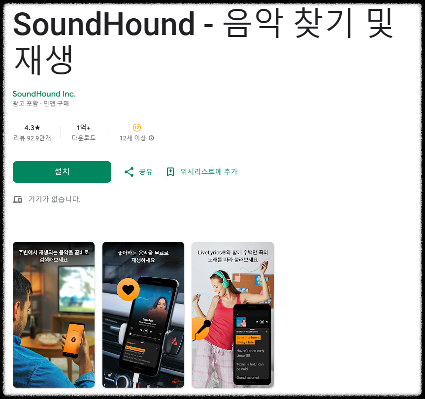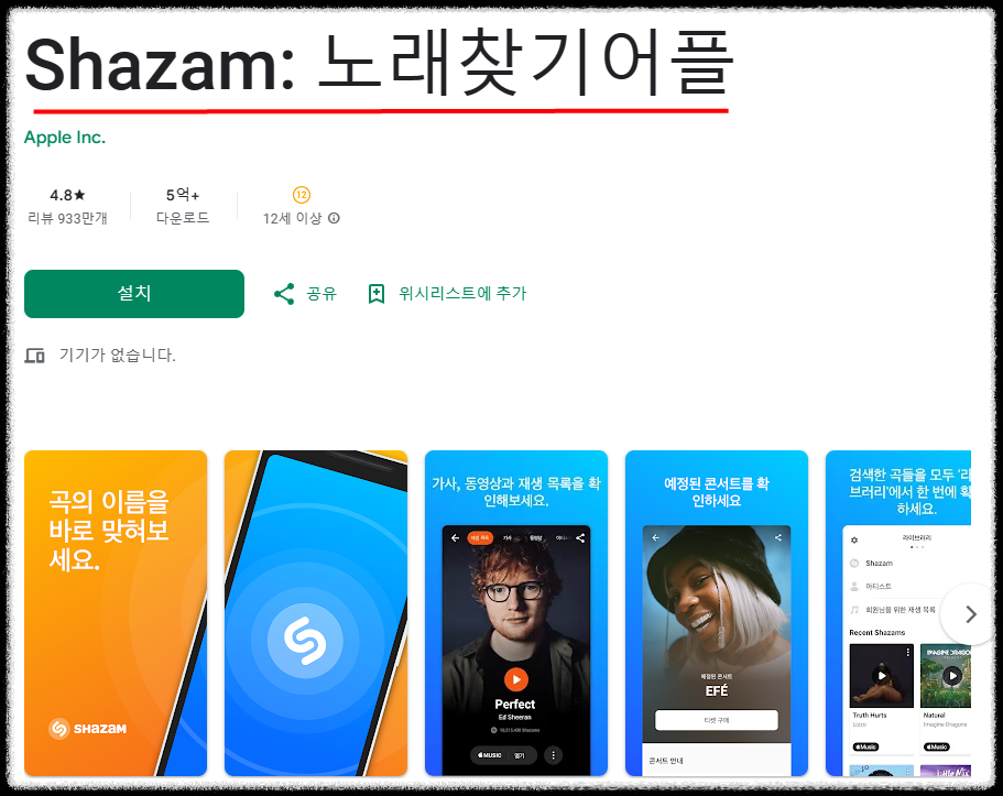 구글 또는 네이버 외에도 음으로 노래 찾기만을 목적으로 출시된 전용앱이 있습니다. 대표적인 앱이 SoundHound 와 Shazam 앱니다. 구글 또는 애플 앱스토어에서 다운 가능합니다.
